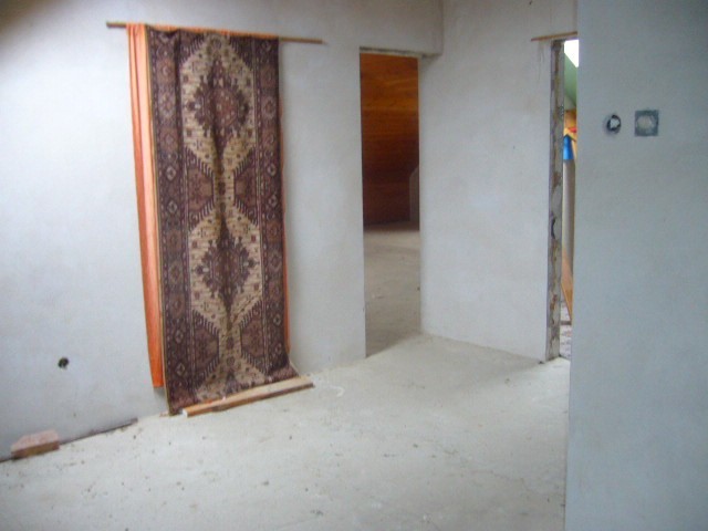 Dom jest nowy , ale wymaga jeszcze wykończenia.Budynek jest ocieplony pokryty tynkiem, dach wyłożony gontem, w pokojach rozprowadzona elektryka,woda, ściany wewnątrz w całym budynku pokryte tynkiem, podłgi wylewki betonowe ,schody wylane betonowe, na sufitach w niektórych pokojach wyłożona buazeria, brak co.