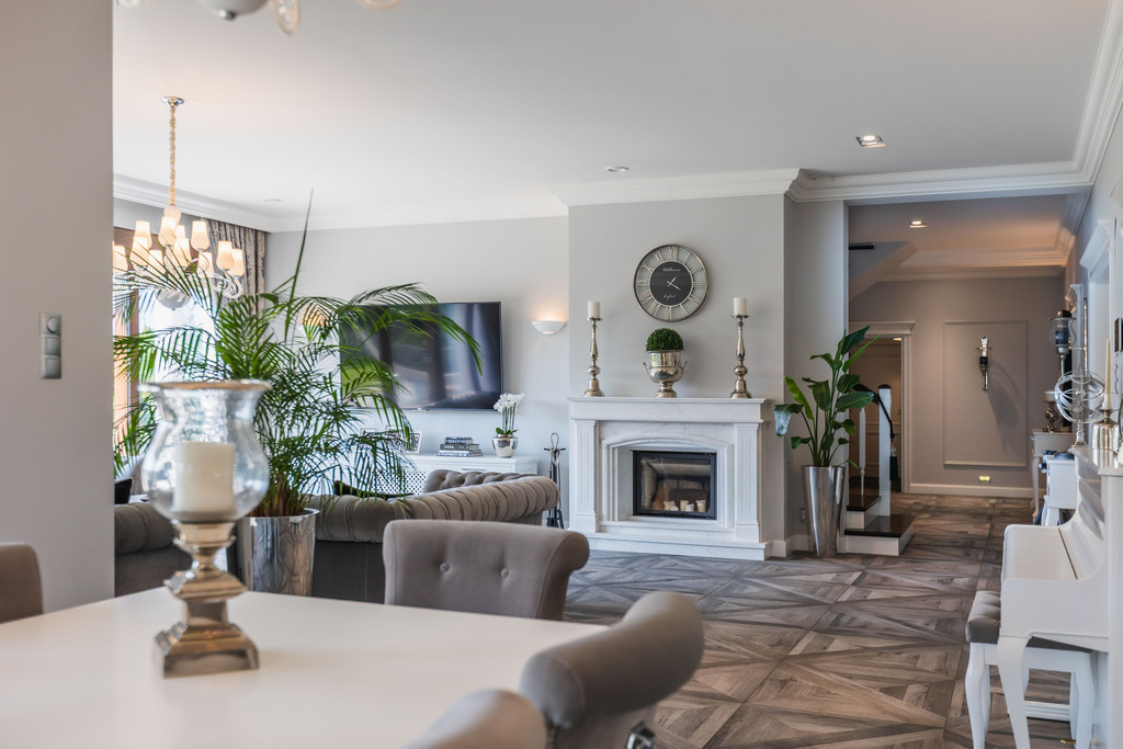 Wnętrze domu to połączenie komfortu, wysokiego standardu i przemyślanej funkcjonalności. Każdy element – od panoramicznych okien z widokiem na ogród, przez meble robione na zamówienie, po armaturę i dodatki od najlepszych światowych marek – został dobrany z dbałością o szczegóły i wygodę codziennego życia.
