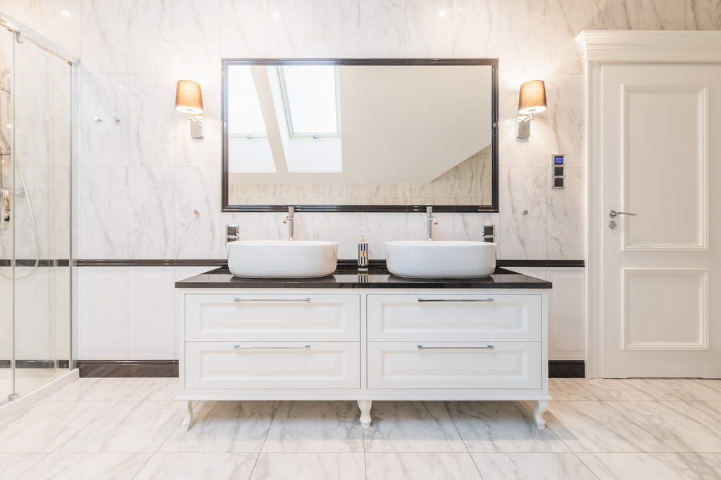Parter domu włożony w całości gresami.