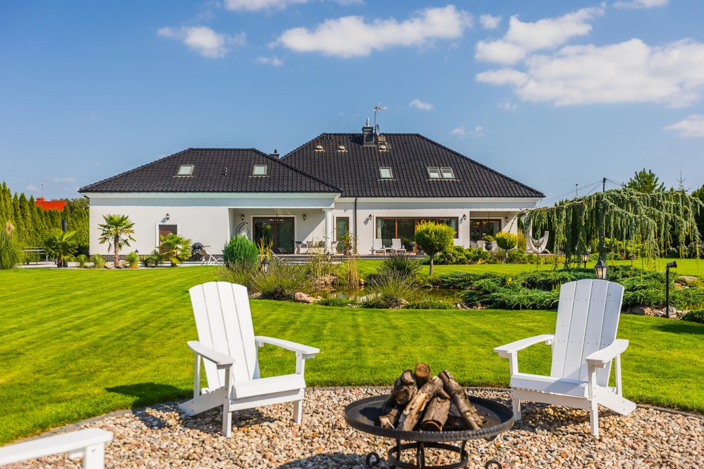 Ogród to osobna opowieść – zaprojektowany przez jedno z najlepszych biur projektowych w Polsce, przypomina małą prywatna oazę. Mamy tu oczko wodne z złotymi rybkami i białymi liliami, spektakularny wodospad z podświetleniem i imponujący staw z ponad setka karpi Koi.