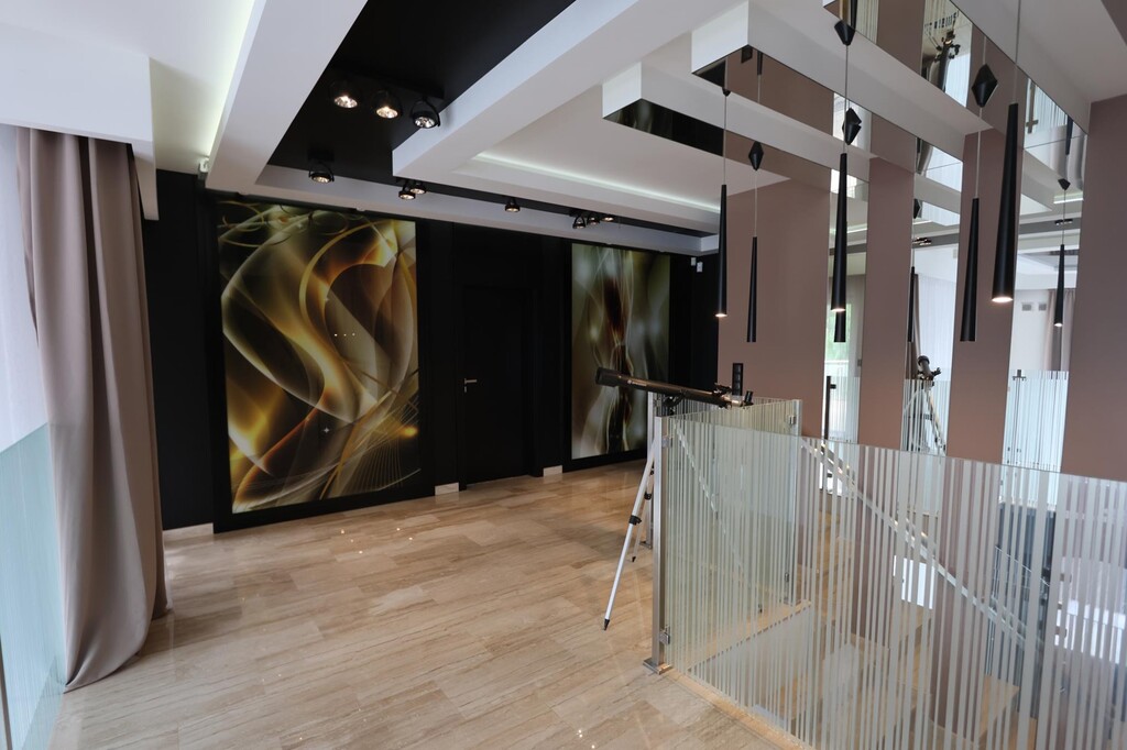 Całe wnętrze zostało skrupulatnie przemyślane, wykończone materiałami najwyższej jakości. Wnętrze budynku jest bardzo dobrze doświetlone dzięki dużym przeszkleniom.