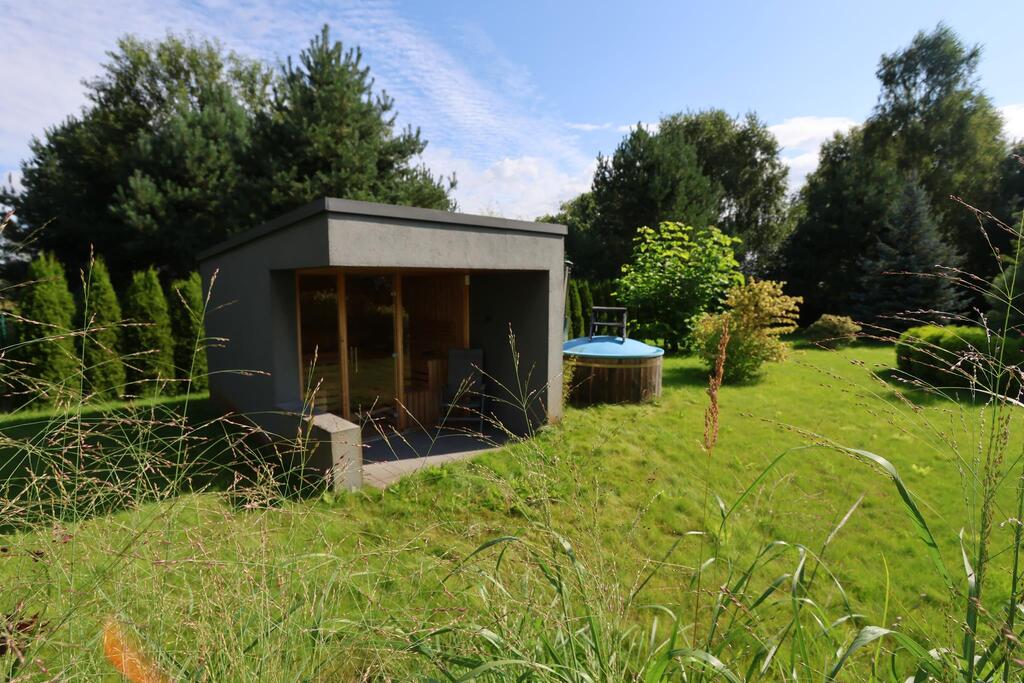Ogród o imponującej powierzchni ok. 2300 m2 to idealne miejsce na pełen relaks – wolnostojąca sauna sucha, balia ogrodowa, basen zewnętrzny z podgrzewaną wodą, funkcjonalne miejsce na ognisko oraz zakątek wypoczynkowy pod bujnymi winoroślami, który w upalne dni przyniesie chwilę chłodnego ukojenia.